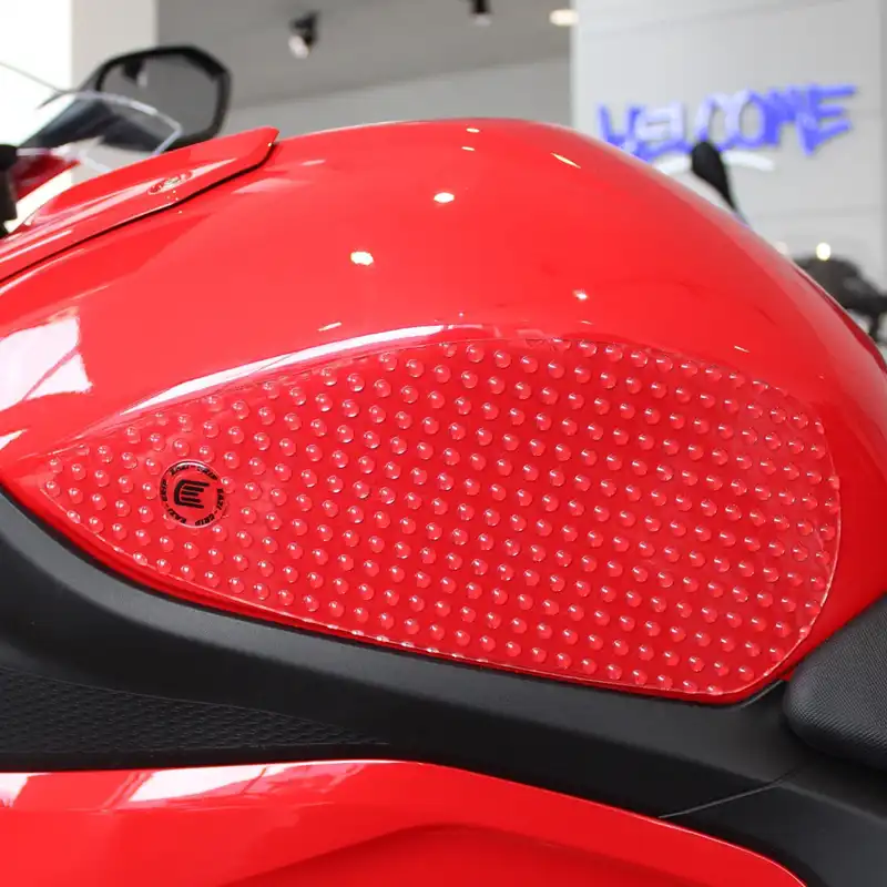 As a high-grip surface, it may slightly restrict sliding on the tank compared to very smooth surfaces—some riders may prefer less grip in certain track disciplines.