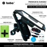 Elevate your ride and protect your phone with the BoBo Waterproof Handlebar Mobile Mount BM11 PRO PLUS. Don’t let your phone hold you back—keep it secure, charged, and ready for anything.