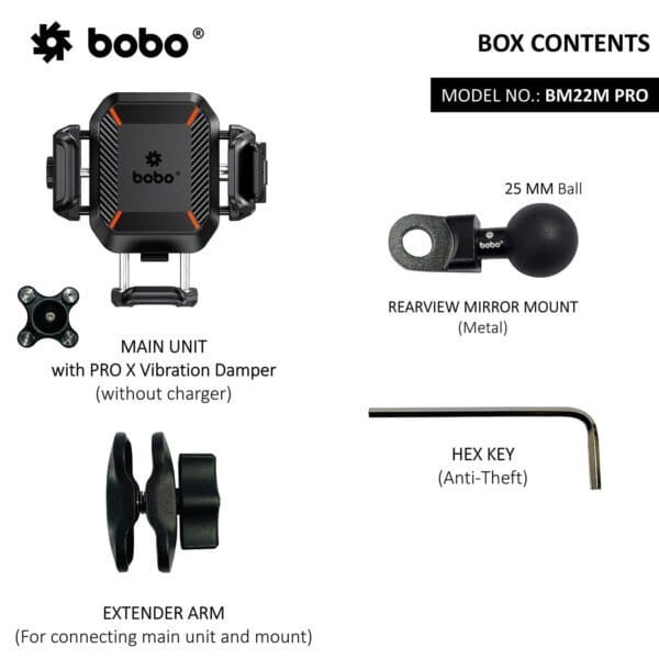 Perfect for daily commuters, touring enthusiasts, and adventure riders, the BOBO BM22 PRO Mount gives you peace of mind on every journey.