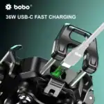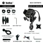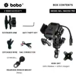 Home Shop GPS / Navigation Phone Mounts & Cases BOBO BM23H (or BM23M) PRO Handlebar (or Mirror) Mount Anti-Vibration Anti-Theft and 15W Wireless / 36W USB-C Charger Handlebar Mount
