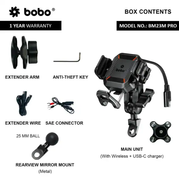 Whether you’re a touring rider, daily commuter, or motovlogger, the BOBO BM23 PRO Mount delivers everything you need in one powerful package.