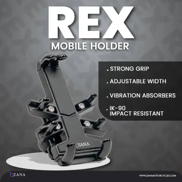 Zana Universal Mobile Holder REX is engineered for riders who demand stability, durability, and security while mounting their smartphones. Designed for universal compatibility, it features an adjustable width to accommodate various mobile devices, ensuring a firm and secure grip on different sizes.