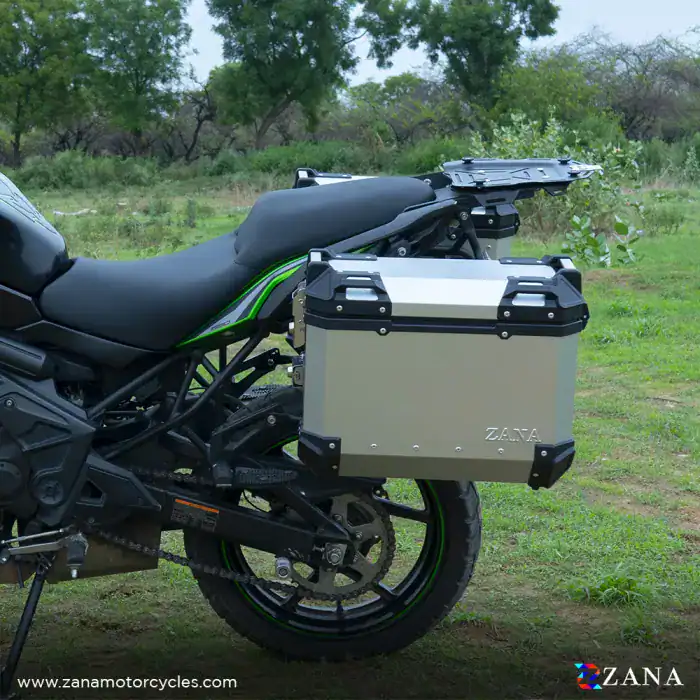 Panniers for Kawasaki Versys 650: These high-quality panniers are constructed from durable aluminium and stainless steel, ensuring long-lasting performance. Designed with waterproof gaskets and overflow drainage, they prevent water seepage, keeping your gear dry. The hardware used is 100% rust-free stainless steel, providing lifetime protection against corrosion.