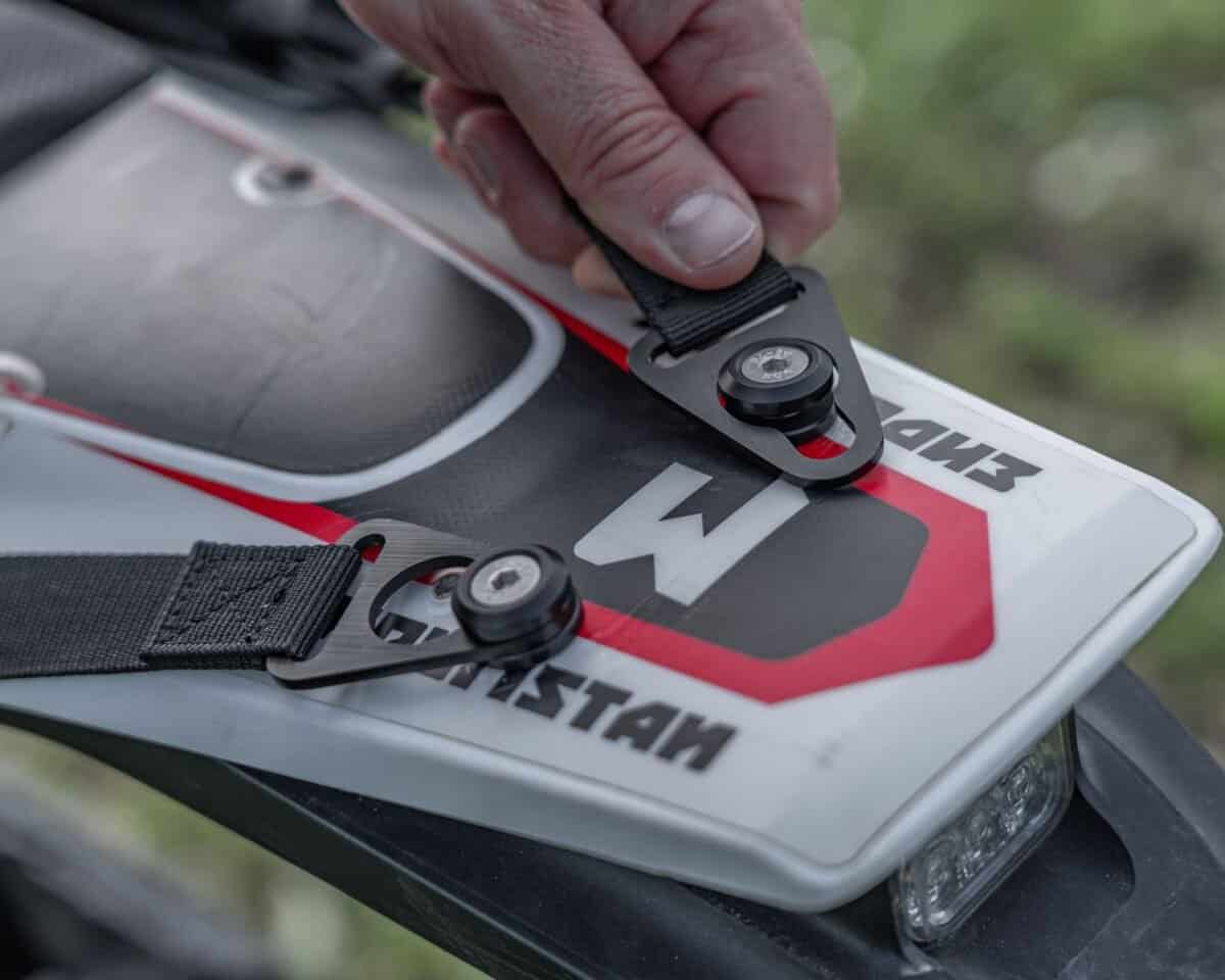 Feature: Multiple mounting points for add-ons like the Bottle Holster, Can Holster, Fender Bag, and XS Base Pack.