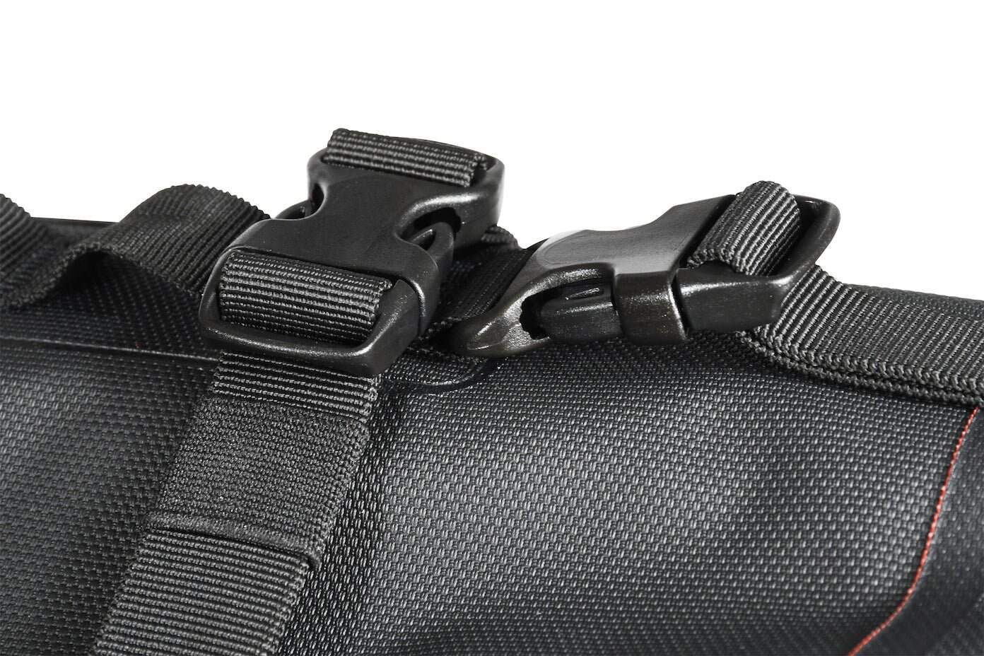 Feature: Each bag weighs only 2.55–2.75 kg and mounts directly to 18mm pannier frames — no heavy plate required.
