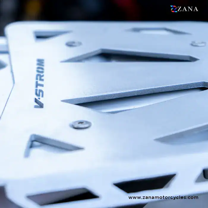 Looking for a heavy-duty storage solution for your Suzuki V-Strom 250? The Top Rack Plate – New Aluminum Silver from Zana is built to give you the strength, compatibility, and style you need for every journey.