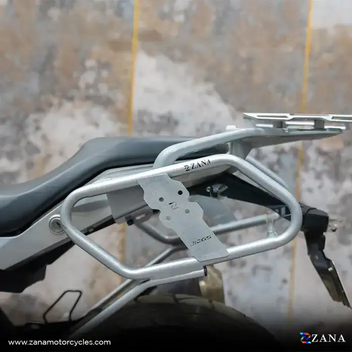 Saddle Stay for BMW G310GS – Silver with Jerry Can Mount is a robust accessory designed to enhance the utility and versatility of your bike. Constructed from super-strong steel tubing, it ensures maximum durability and support, mounted securely at three points for optimal stability. This saddle stay is compatible with both the BMW G310GS and BMW 310R models, making it a versatile choice for riders of these bikes.