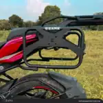 Enhance your Pulsar NS400Z with the Saddle Stay with Jerry Can Mount, engineered for secure fuel storage during long rides and off-road adventures. This robust design ensures stability, keeping everything in place even during challenging terrain. The Jerry Can Mount is permanently attached for maximum durability and ease of use, making it a perfect addition to your bike.