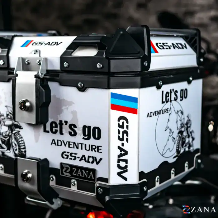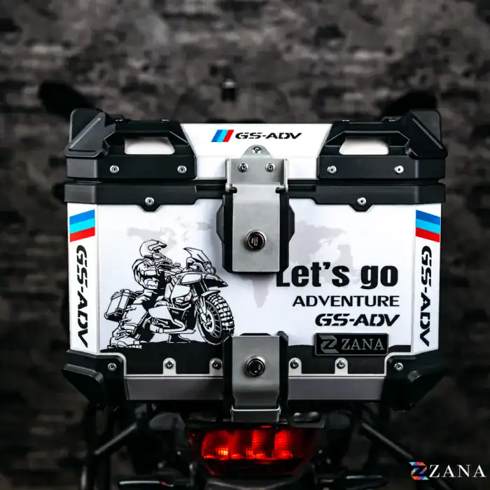 Upgrade your BMW adventures with the Sticker Top Box Aluminium (45L) L-Flat Silver with Back Rest Cushion – where style meets performance for every ride.