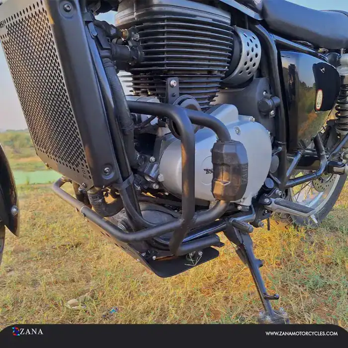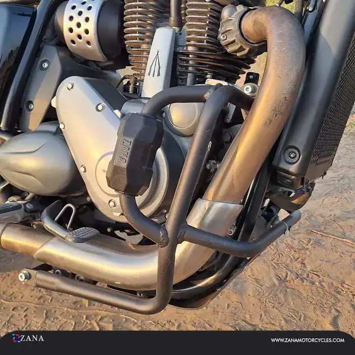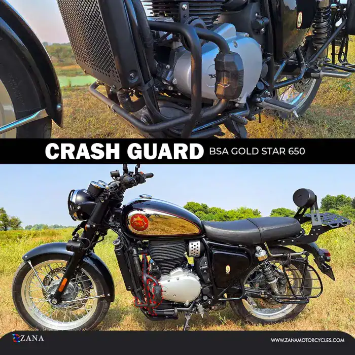 Crash Guard with Slider Puck (Mild Steel, Black) for the BSA Goldstar 650 by Zana Motorcycles offers premium protection for your motorcycle’s vital components. Crafted from high-quality mild steel, this crash guard is designed to provide maximum defense in the event of an accident, ensuring the longevity of critical parts like the engine and exhaust system. The integrated slider puck enhances impact resistance while maintaining ample clearance around the rider’s legs and shoes, ensuring both safety and comfort.