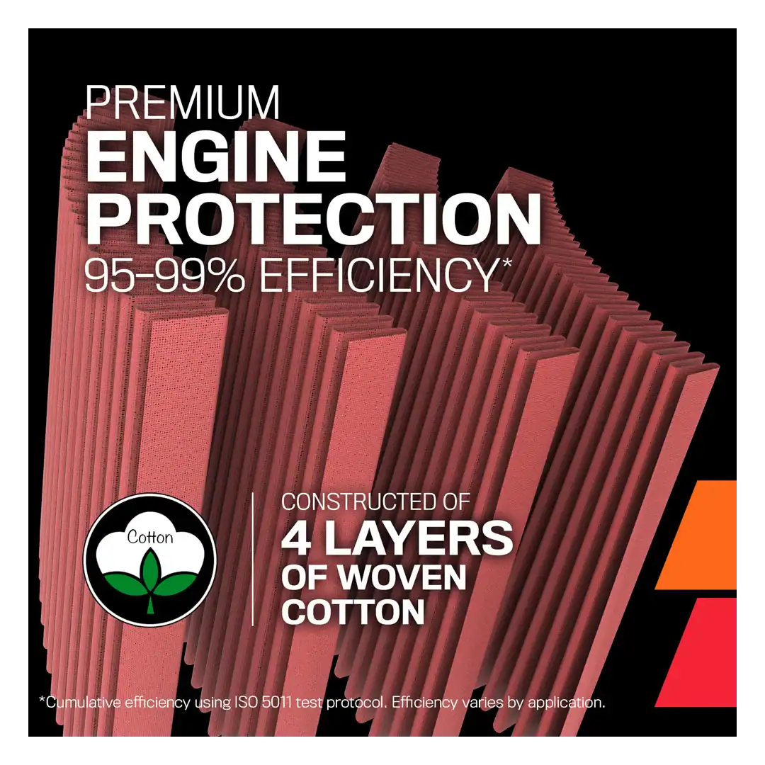 - 4 LAYERS OF PROTECTION: Multiple layers of premium cotton gauze treated with a specially-designed tacking agent work together to create an intricate mesh of engine filter media that is designed to block and trap harmful contaminants