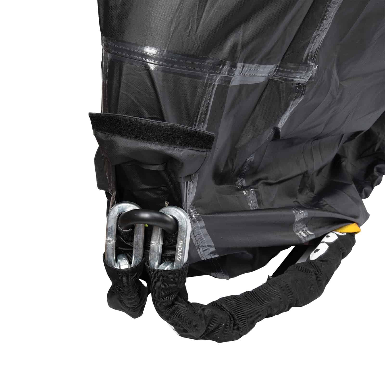 Yes — the cover includes strategically positioned holes and a dedicated pouch to allow your padlock or chain lock to be used while the cover remains fitted.