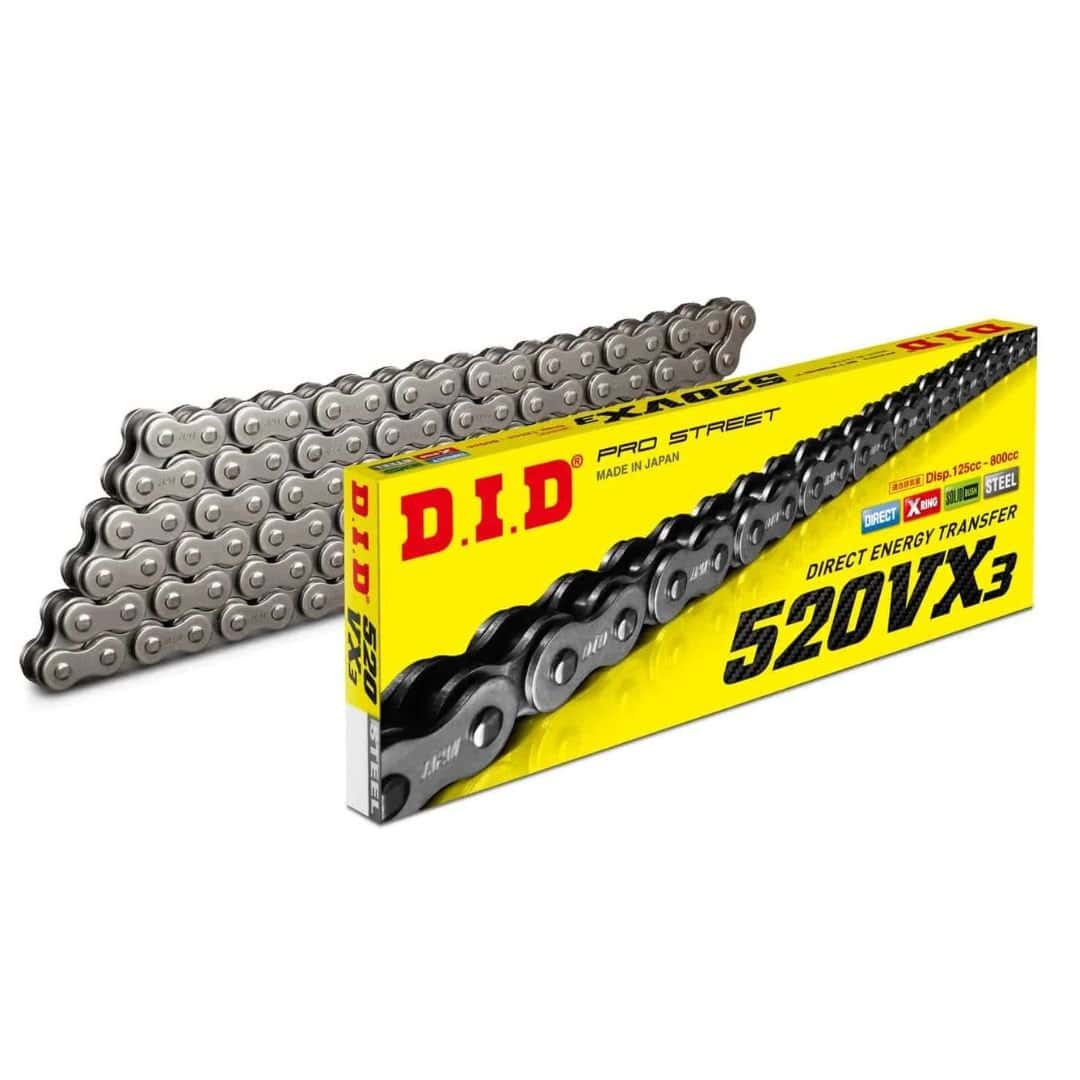 DID 520VX3 X-Ring Motorcycle Chain – 106 Links, Steel Finish | Suitable for 800cc Motorcycles