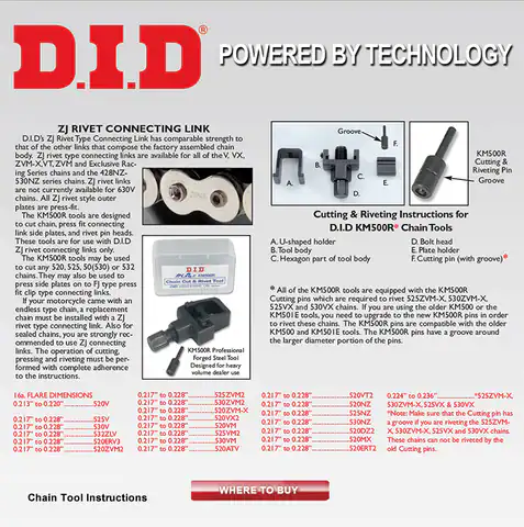 Trusted by professional mechanics and race teams worldwide, the DID KM500R offers unmatched precision and reliability when installing or repairing motorcycle drive chains. Whether you’re in the garage or on the go, this compact yet powerful tool delivers professional results every time.