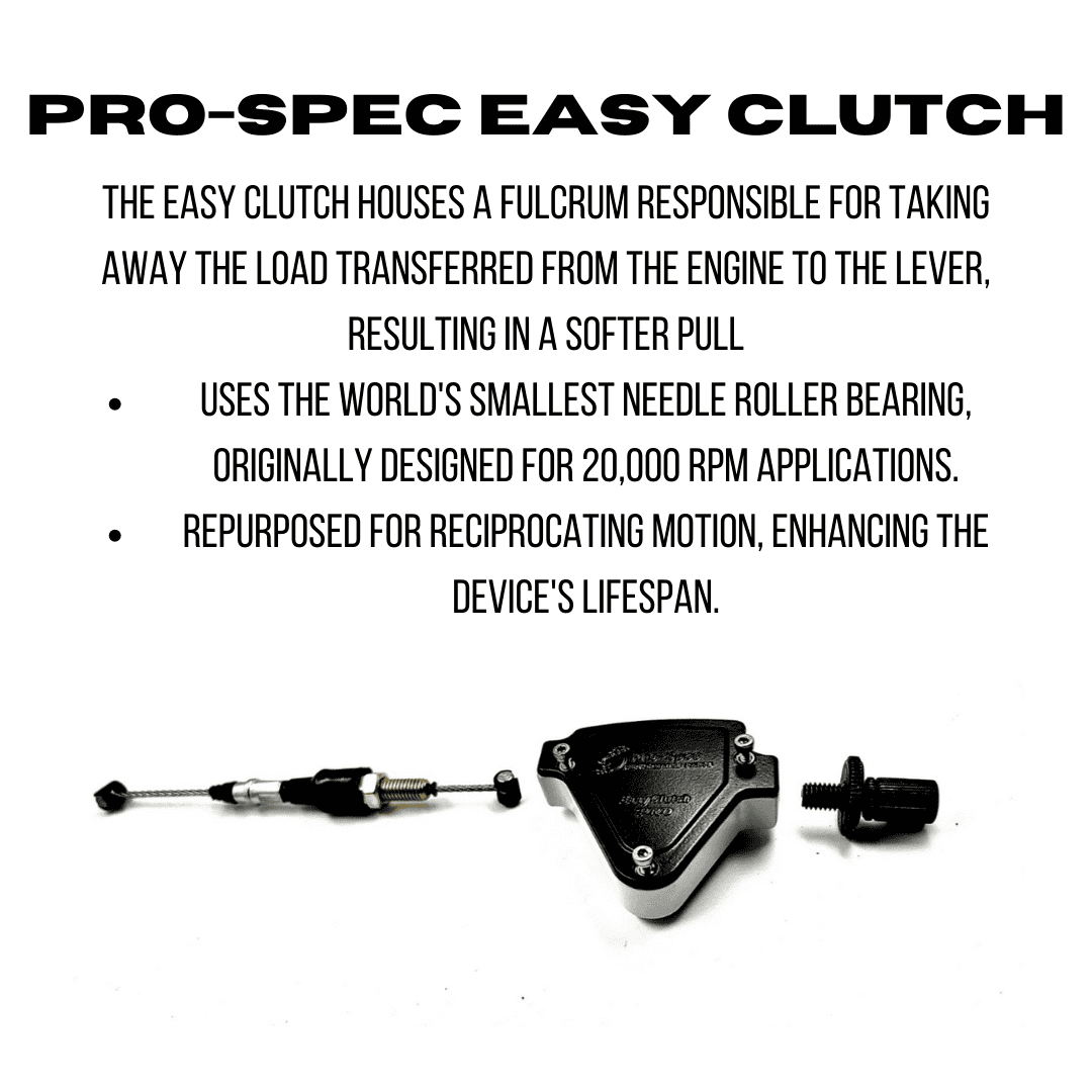 The Easy Clutch operates using a fulcrum mechanism that reduces the load transferred from the lever to the engine, resulting in a lighter clutch pull. It incorporates one of the world’s smallest needle roller bearings, originally built for high-speed (20,000 RPM) applications. In this case, it functions in a reciprocating motion, greatly enhancing durability and lifespan.