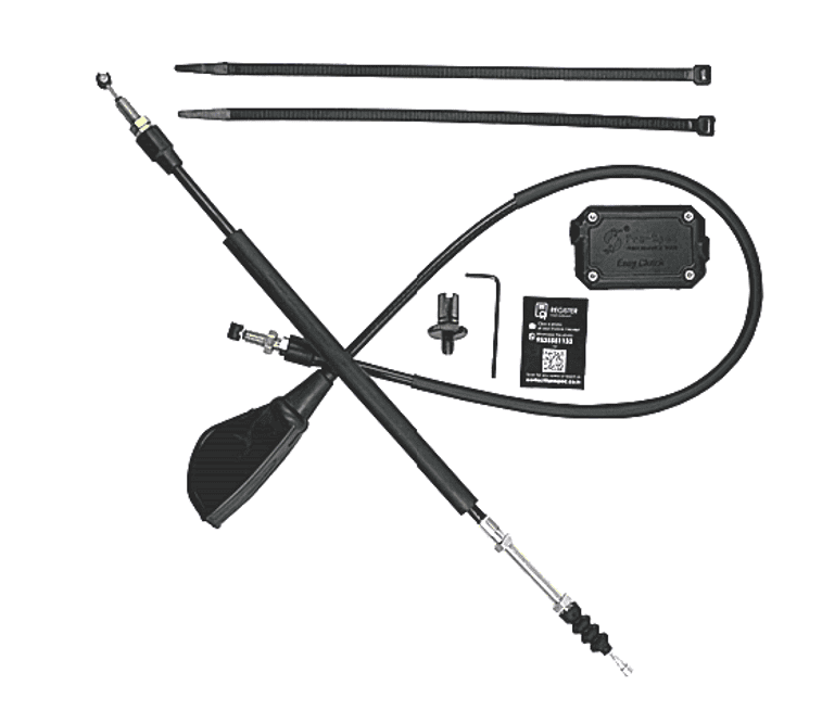 The Easy Clutch is a device designed to reduce up to 40% of the clutch effort applied on the lever. It is custom-tuned for various riding conditions while conforming to global standards. The device is installed in place of the original clutch cable and uses high-quality materials such as aerospace-grade aluminum for the Pro series and high-grade composite material for the non-Pro series. This ensures durability and smooth operation, making it easier for riders to engage and disengage the clutch with less effort.