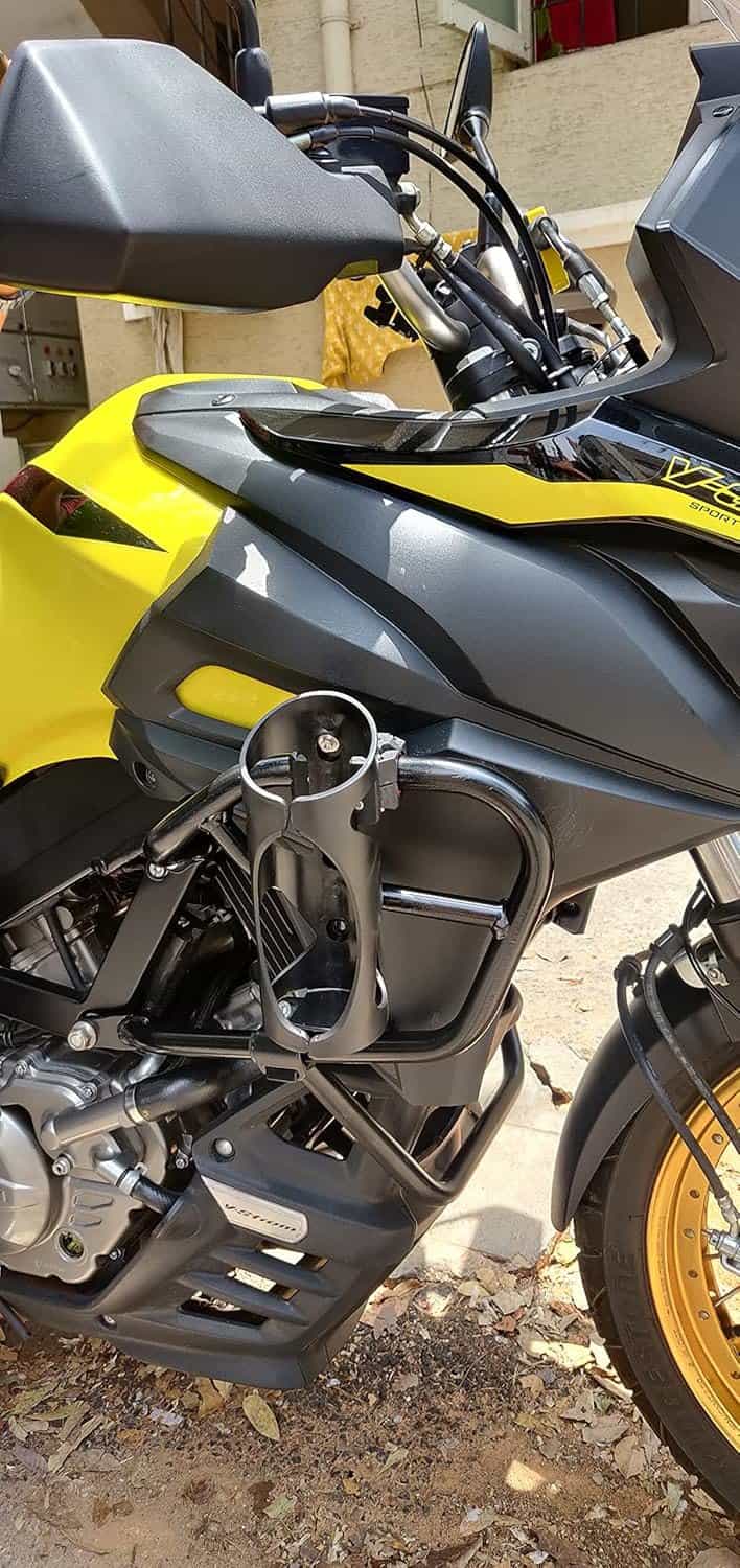 - Securely mounts your water bottle to the crash guards, so it’s always within easy reach.