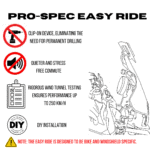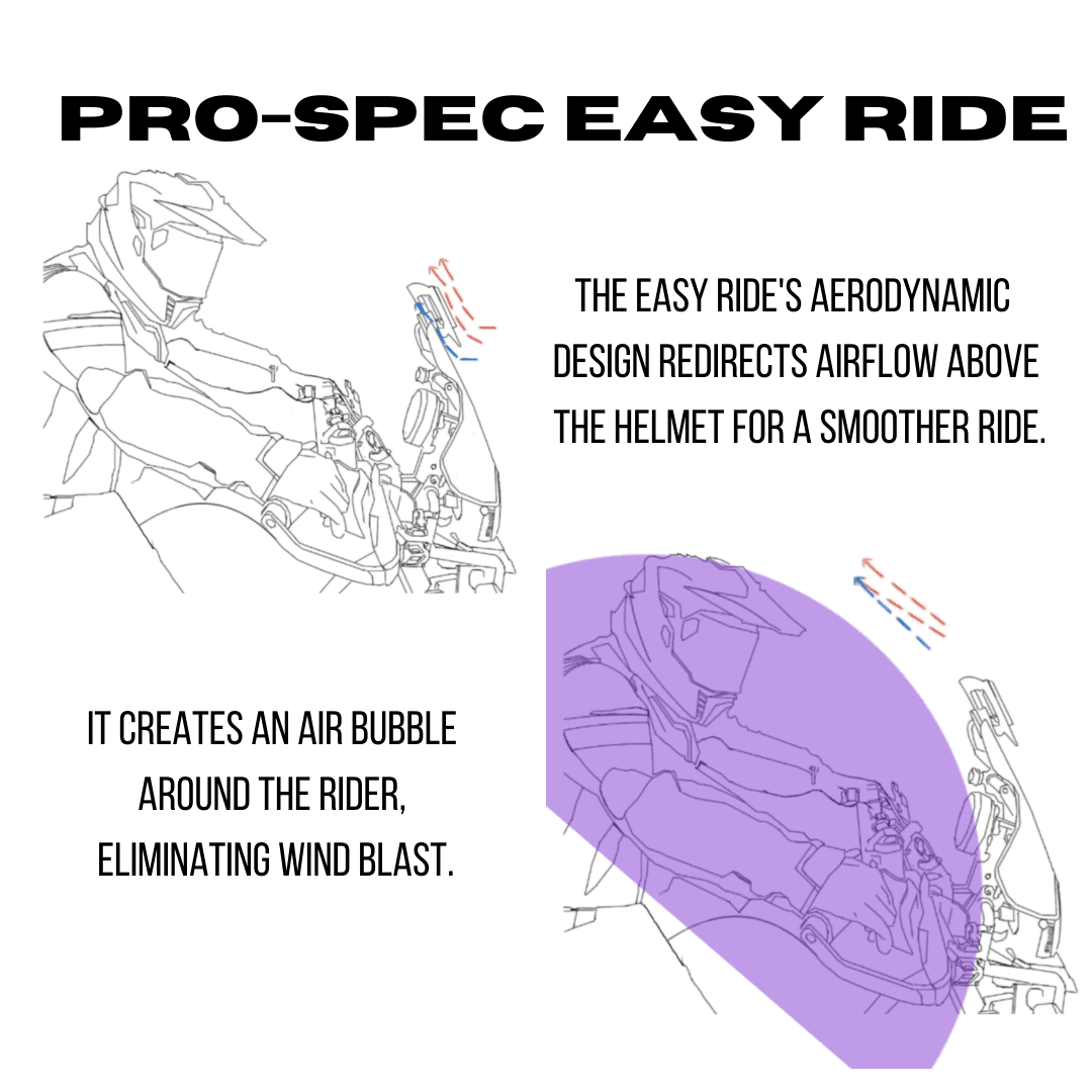 The Easy Ride by Pro-Spec is a windshield extender designed to make highway rides more comfortable. Each Easy Ride is wind tunnel tested for performance up to 250 km/h and field-tested across rugged terrains. It remains stable and reliable even at speeds over 225 km/h, giving riders confidence and comfort in all riding conditions.