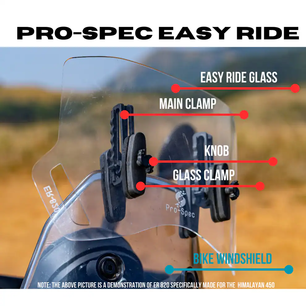 The Easy Ride by Pro-Spec is a windshield extender designed to make highway rides more comfortable. Each Easy Ride is wind tunnel tested for performance up to 250 km/h and field-tested across rugged terrains. It remains stable and reliable even at speeds over 225 km/h, giving riders confidence and comfort in all riding conditions.
